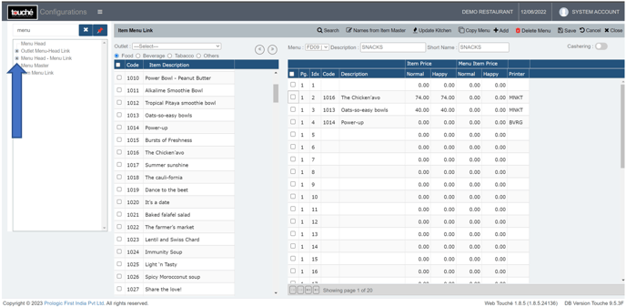 You can refer the Menu Head name and code from the POS as shown below