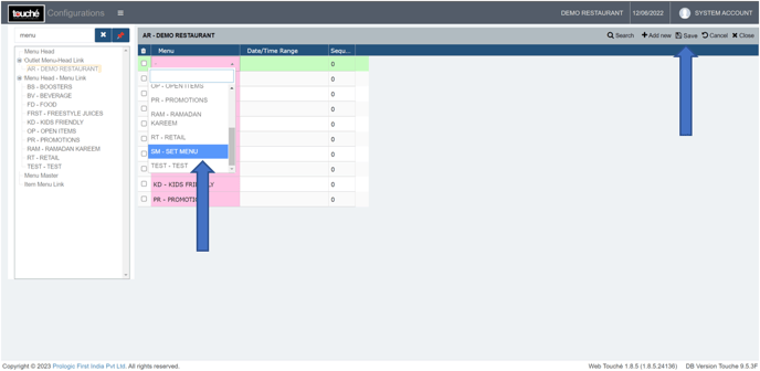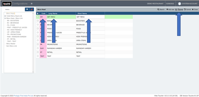 Note: To remove/delink sub menus from POS, tick the left boxes of those menu heads you want to remove here