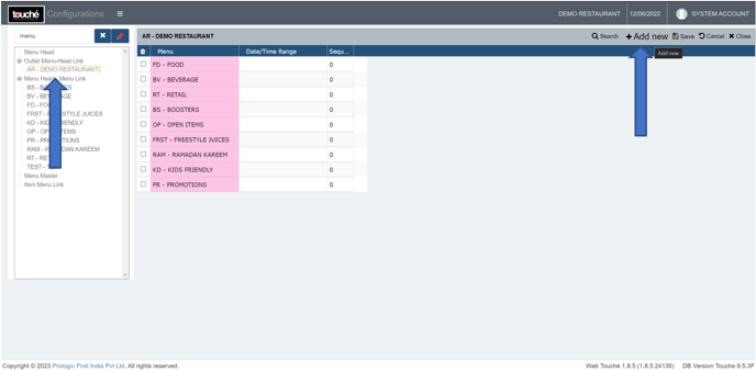 4. Select the Outlet to which you want to link the menu head to, and click on Add New