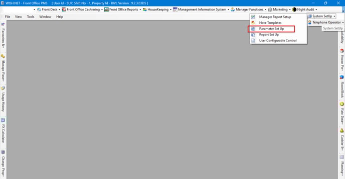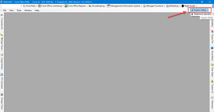 - Go to Frontdesk and find System setup in the bar as shown below