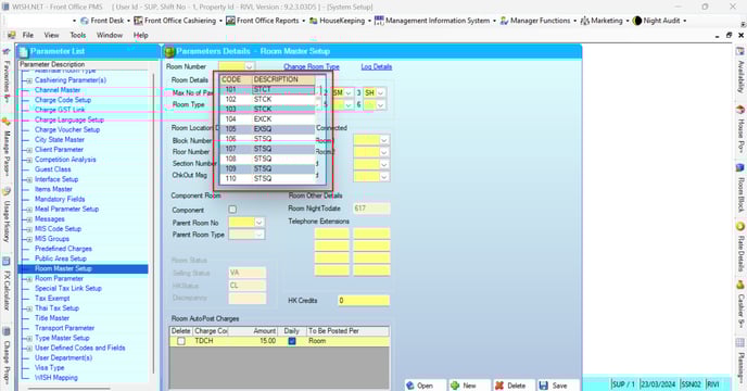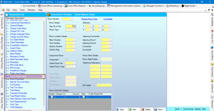 - In Parameter Set Up find the Room Master