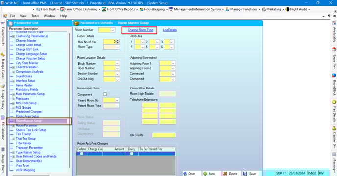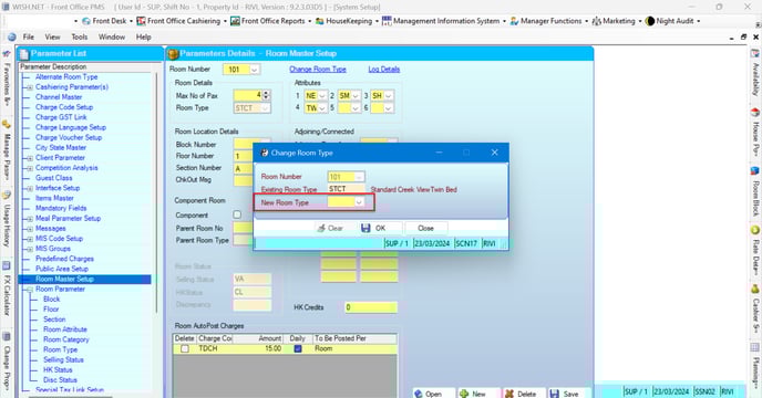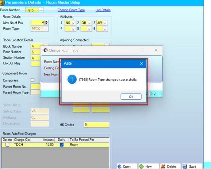 - Select the New Room type for the mentioned room