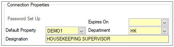 Step 8: Enter the default property, department, and designation for the user.