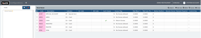 - Configurations Access to Mode Master and Account Master