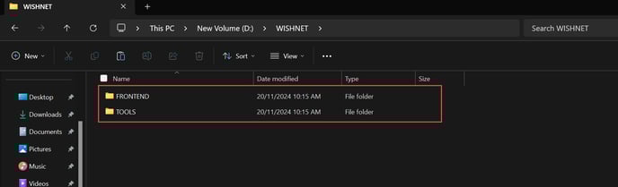 - Copy the frontend folder from the server PC and paste it to the required client PC. Additionally, locate the Crystal Reports installation file, which can typically be found in the adjacent folders, possibly in a folder named "TOOLS."