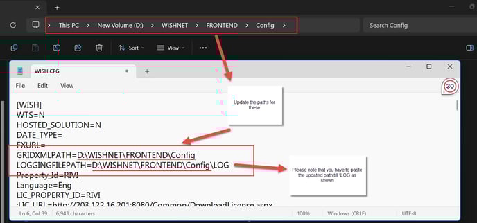 - Now, navigate to the Frontend folder and open the "Config" folder. Then, locate the file "WISH.CFG", Edit with Notepad, and update the paths below to reflect the latest directory locations.