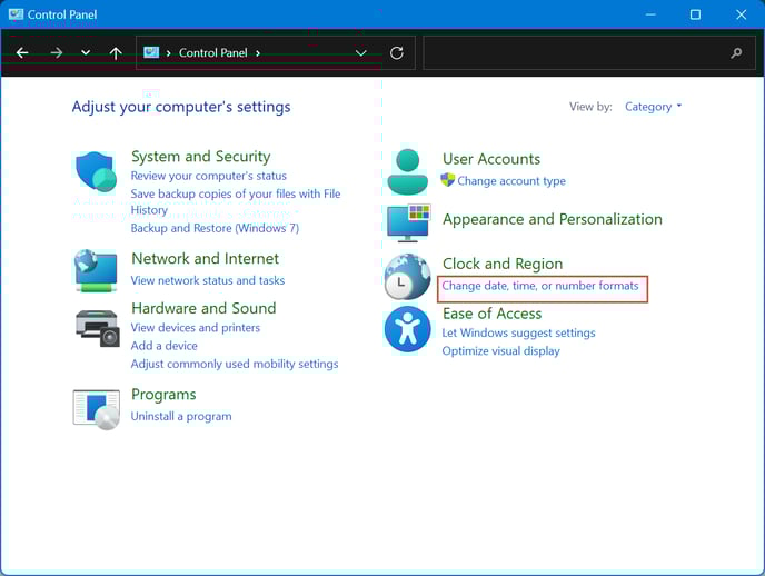 - Next, you must configure the date and time settings, which can be found in the Control Panel. Please make the necessary changes as indicated below.