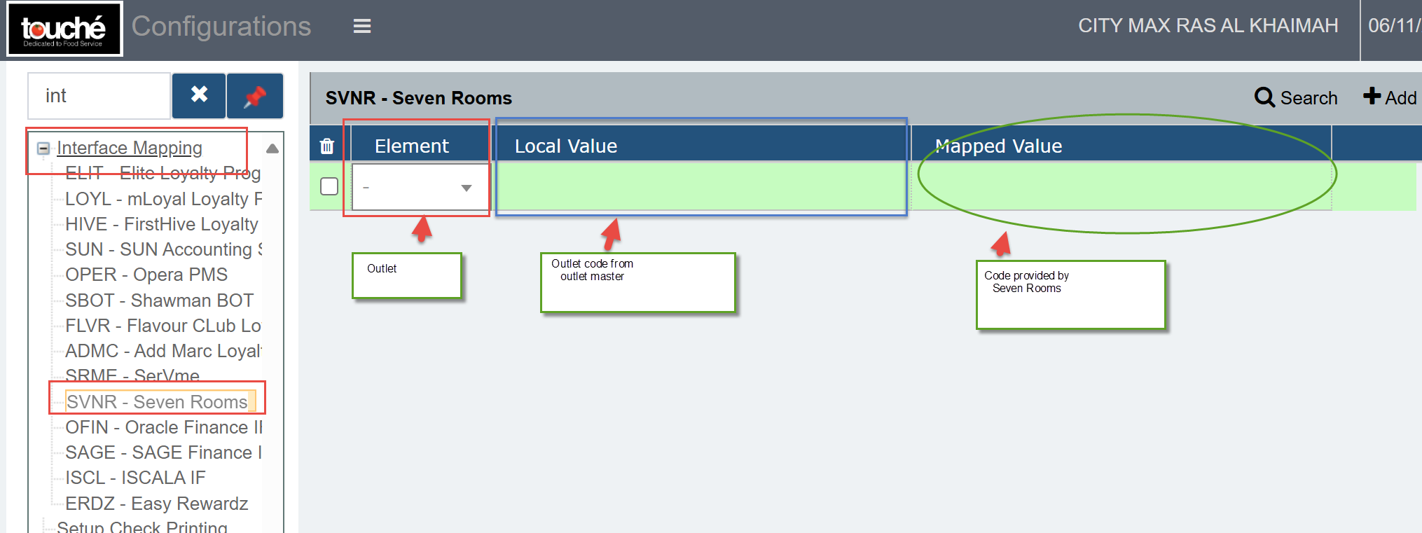 Step 5: Add the configurations in interface configuration screen from WebTouche: