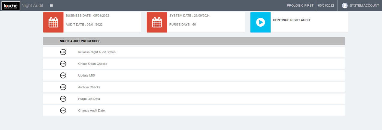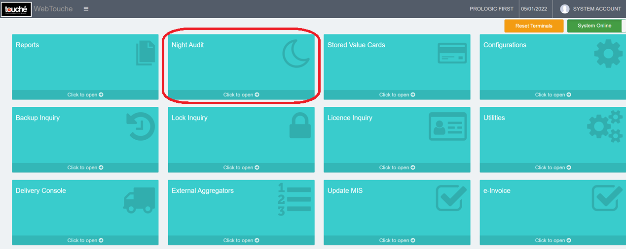 ♦ Before starting the night audit ensure you have tallied the sales for the day and there are no open bills in the POS.