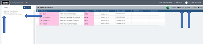 To ensure that the transfer is correctly done so as to make sure no entries are missed or invalid, the below masters can be check to apply/manage the GL/AR codes. These should be created in the Back Office prior to any transfer. Once entered, Click Save to confirm for each masters