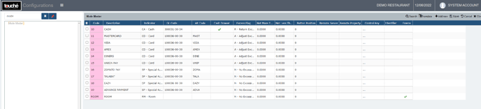 Touche interfaces with WebProlific Accounting Module by means of mapped GL and AR codes against Charge Codes, Taxes/VAT and Settlement Modes. The transfer from Touche POS to Back Office takes place every day further to the completion of the Night Audit/Day End in the POS.