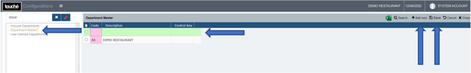 Departments serve as a main revenue head for outlets/revenue centres, managed under Department Master. These are linked to outlets/revenue centres under Outlet Master