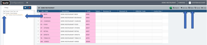 Charge Codes are the linked revenue heads under which the department's and account's revenue is tracked. It also allows the POS to work with the items of a particular account with the outlet of a particular department. They are created by linking Account Codes and Department Master, which is done in Charge Code Master. Linking here is important: