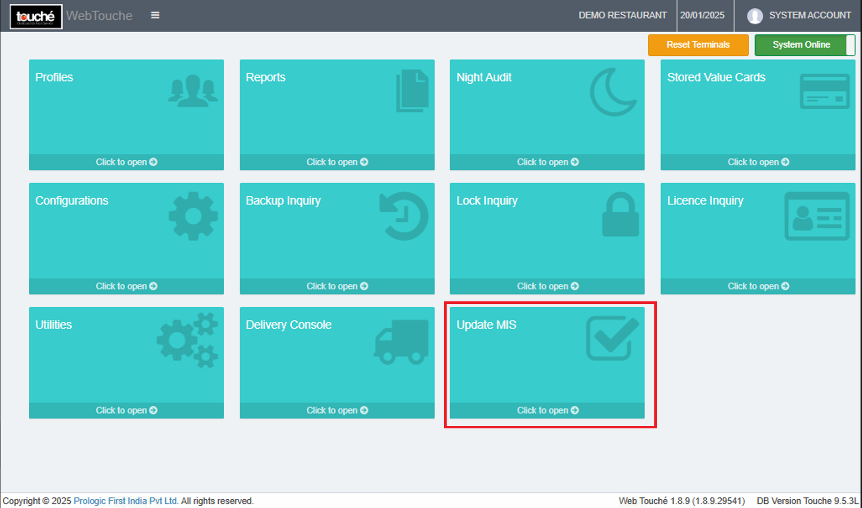 1. After Logging into WebTouche, select UpdateMIS