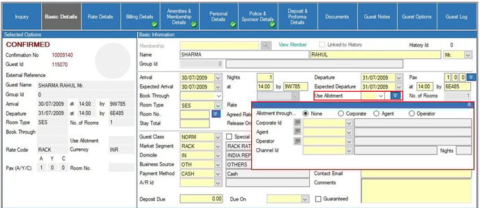 If multiple intermediaries are associated with the current reservation (such as a Tour Operator and a Travel Agent), you can select them by clicking on “Allotment Details” and choosing the relevant intermediaries.