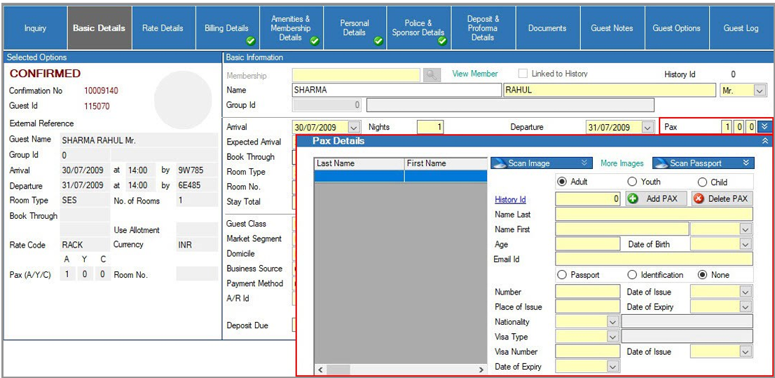 - You can attach a guest image and identification image by clicking on the Scan Image and Scan Passport tabs in the Pax Details screen, then scanning or uploading the images.